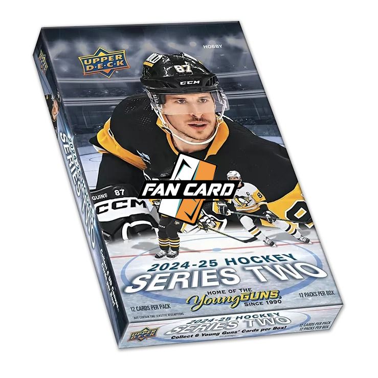 2024-25 Upper Deck Series 2 Hockey Hobby Box je druhou polovicou najznámejšej zberateľskej série NHL kartičiek. Prináša nové Young Guns rookie karty, exkluzívne inserty a paralelky, ktoré dopĺňajú základnú sériu Upper Deck Series 1.